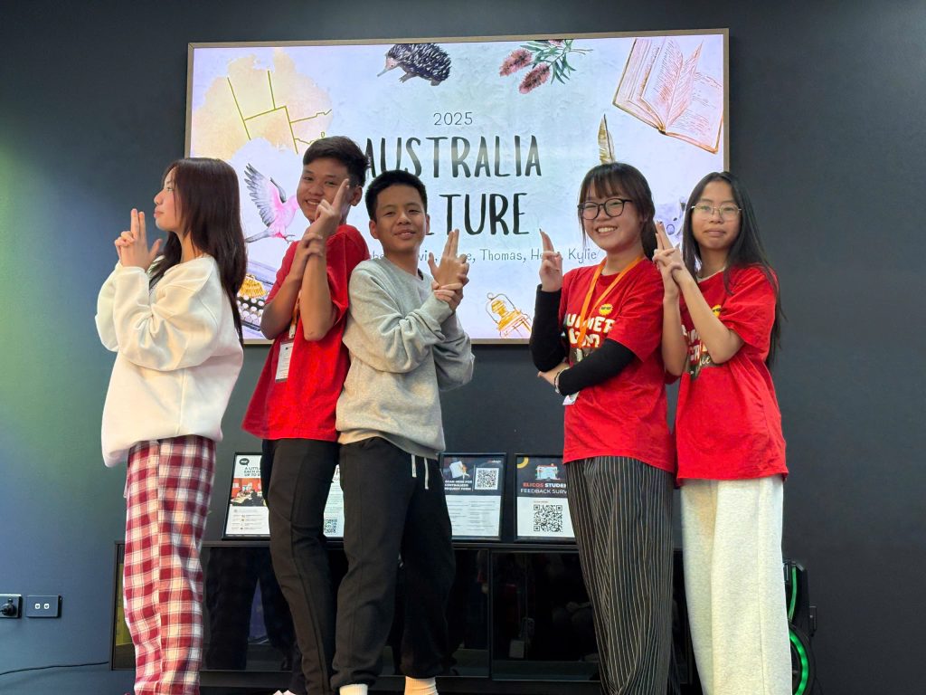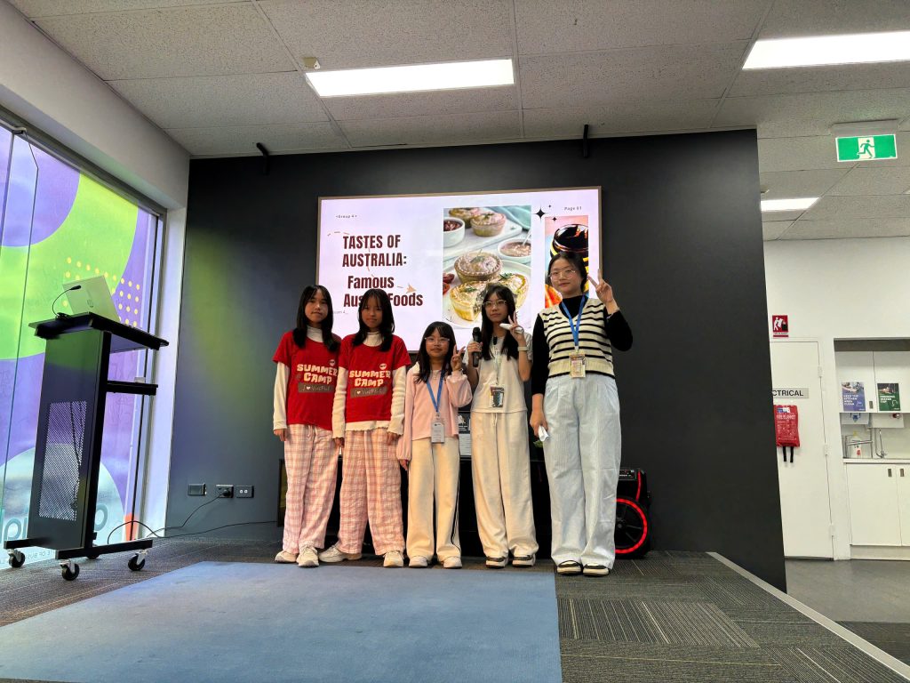 Trong suốt những ngày cuối của trại hè, các học viên cùng nhau chuẩn bị bài thuyết trình theo nhóm với các chủ đề mở, gắn liền với những gì đã học và trải nghiệm tại Úc. Từ việc xây dựng nội dung, phân vai, đến thực hành trình bày – tất cả đều do chính các em chủ động thực hiện dưới sự hướng dẫn của giáo viên. Điều này giúp rèn luyện kỹ năng tư duy logic, sắp xếp ý tưởng, làm việc nhóm hiệu quả và đặc biệt là khả năng thuyết trình bằng tiếng Anh trước đám đông.